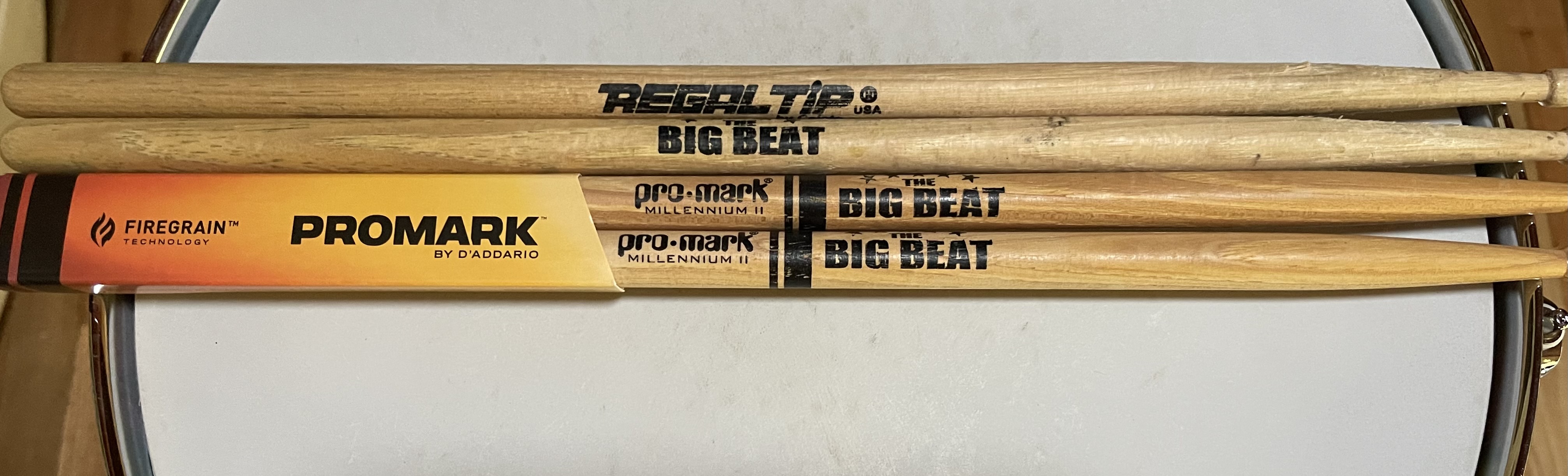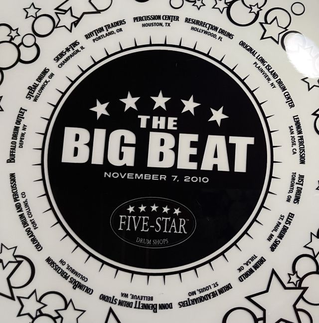 Since you already have multiple shots up on your site, I will send one picture of the Snare, just so you know I actually have one. I will also send pics of the original Big Beat Snare Drum Head, that lists all 15, 5 Star Drum Shops. I did an internet search for all of them, and sadly only 7 are still open. I also have the Info Card from the Raffle Table describing the drum and two pair of Big Beat Drum Sticks, one ProMark pair and Regal Tip pair that I will send separately."
