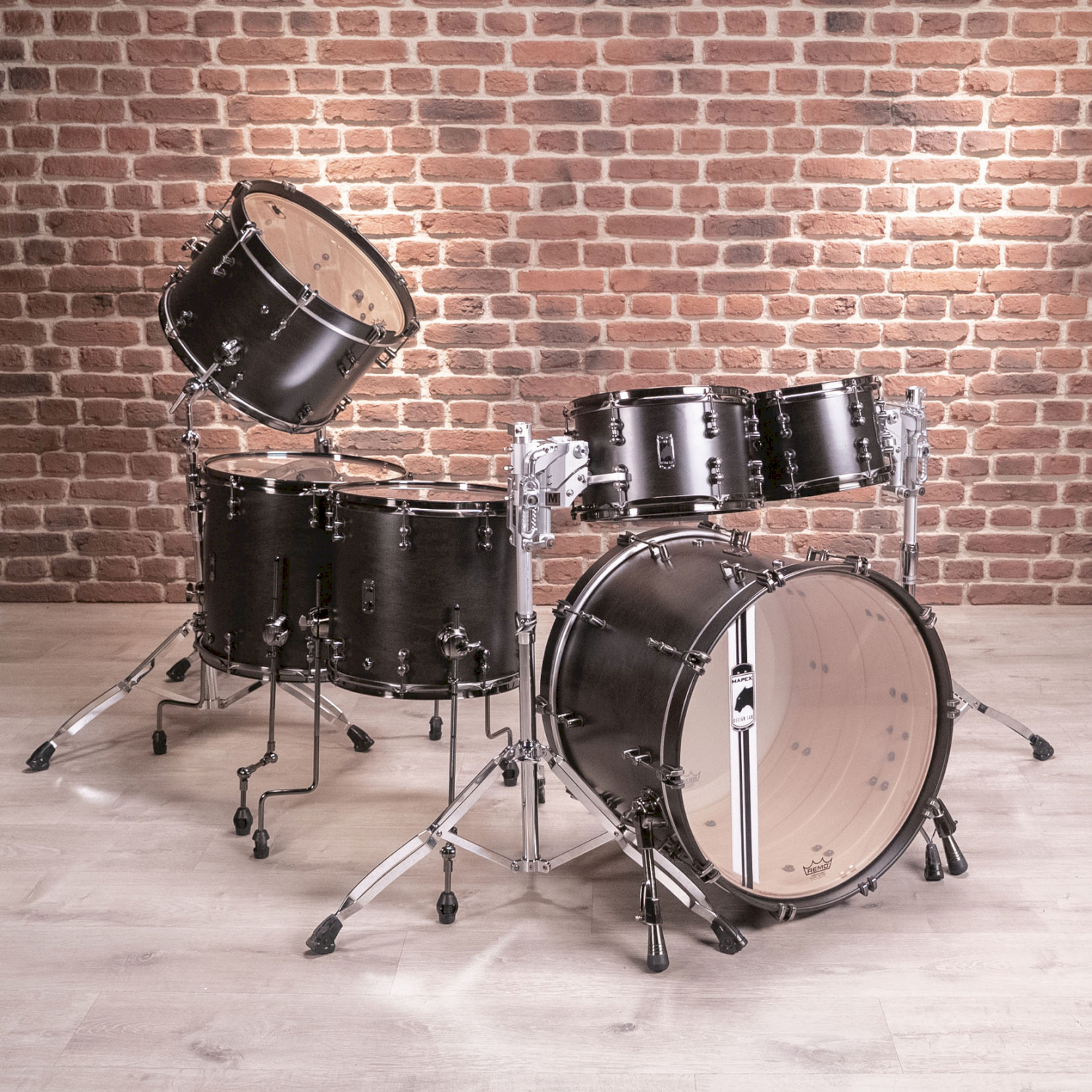 The Black Panther Design Lab Versatus System represents the pinnacle of instrument design. Groundbreaking innovations combine with drum-building mastery to form a unique and extremely versatile instrument. The hybrid Maple and Mahogany shells use the chamber-specific designs of the Black Panther Design Lab systems. Plies get progressively thicker, depths graduate by 1/2”, bearing edges change and the SAS ring system modulates as the drums get larger in diameter. The combination of these details creates an amazing symphony of instruments in one kit, where each and every drum sounds perfect!
