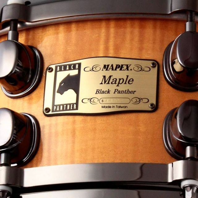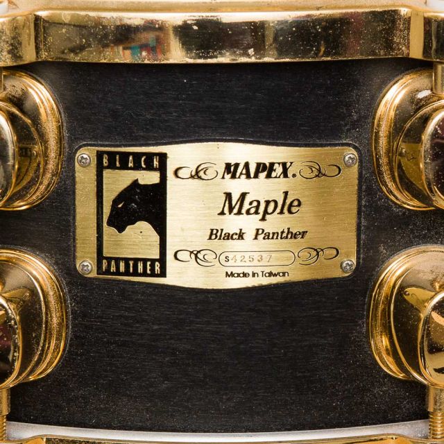 This badge appeared sometime around the turn of the millenium and continued on the standard Black Panther snare range until around 2004 when it was replaced by the oval sub-series badges. It does appear to have continued for a few more years on some snares made to match Orion kits.