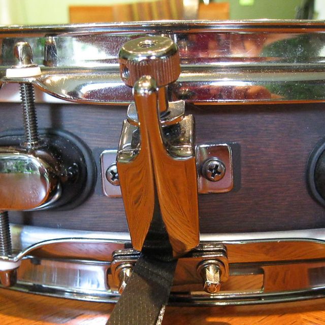 This is the later model of the piccolo throw off, with a longer tapered "finger" that gave the drummer a bit more leverage than the original square one. As it came in roughly around the ubiquity of the standard "Orion" throw-off, I'm calling it the "Orion Piccolo Throw-Off". And because the "long-finger" throw-off sounds somehow inappropriate!