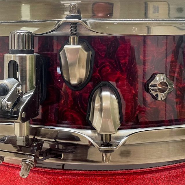 On some shells lke the Metallion and Nucleus, these are arranged in a staggered formation, but they are physically the same lugs so I haven't listed those separately. My first thought was that this was simply stylistic choice as there are other 5.5" deep models with inline B-Lugs, like the 2015 Warbird, the Blade, the Brass Cat and the Stinger. However, after asking around on the Facebook Group, it was pointed out to me that this can give the shell a broader tuning range, as the lug bolts can be longer. Also they have more room to tighten into the lug box than is possible with the later Double-Ended B-Lugs. See - you learn something new every day!